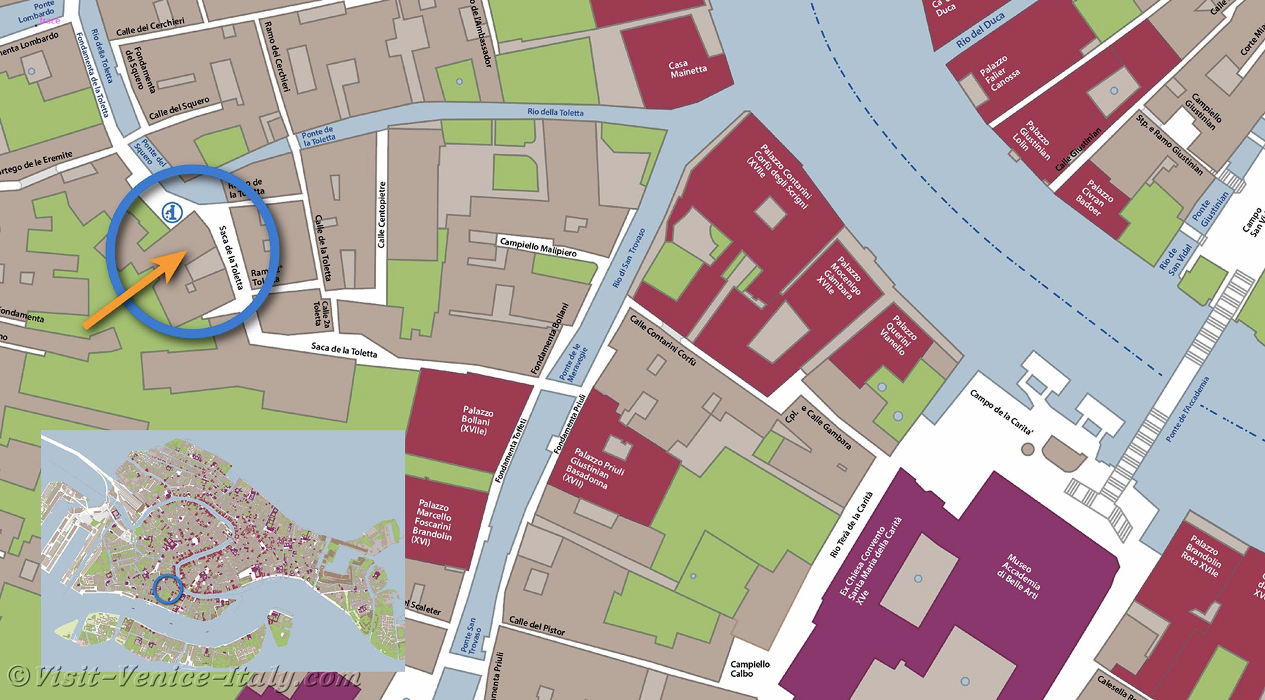 Location Map in Venice of Canestrelli 1173, Calle de la Toletta - Dorsoduro